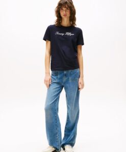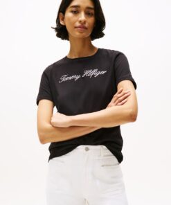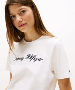 Keep it clean and simple for your casual wear with this pure cotton t-shirt, finished with script logo embroidery on the chest.