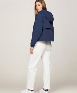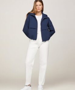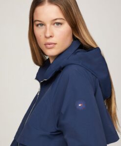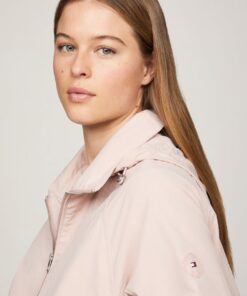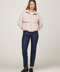 This nylon windbreaker features a zip closure and adjustable toggle cord hem for a sleek, sporty look. With a slightly cropped fit, this jacket is lightweight and easy to wear, perfect for breezy days.