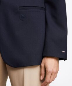 This sleek blazer exudes elegance with its classic single-breasted design, and is complete with understated branding details for a signature finish.