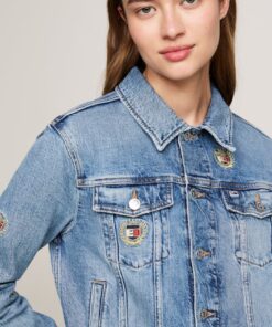 Take on casual days in style with this denim jacket, finished with all-over Tommy Jeans crest embroidery for distinctive, elevated branding.