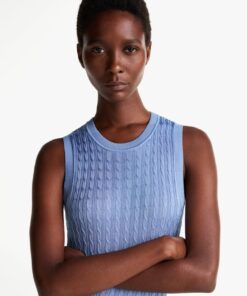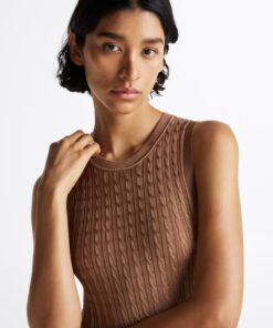 Knitwear just got party-ready with this cable-knit jumper dress, featuring a subtle sheen and a slim, maxi-length silhouette.