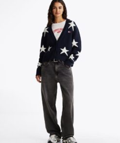 Statement stars add an all-American vibe to this cosy cardigan, while the relaxed silhouette enhances its laid-back look and feel.