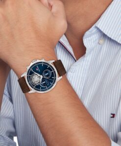 Introducing the men’s watch that transcends timekeeping to become an elevated masterpiece inspired by the dynamic pulse of the city. This metropolitan inspired timepiece features a Dimensional multi layer dial with a textured and sunray finish, CD cut sub eyes and TH branding elements throughout. Multifunction and offered in a bracelet or leather strap.
