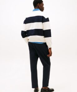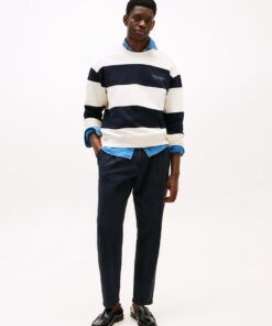 Give your casual looks bold sports styling with this relaxed striped sweatshirt, featuring an embroidered Hilfiger monotype logo.
