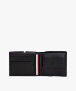 This slender leather wallet with an elevated finish and signature flair has separate spaces for coins, cards and notes.