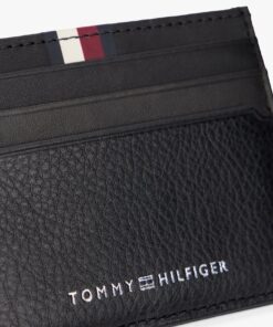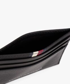 This slender leather wallet with an elevated finish and signature flair has separate spaces for cards.