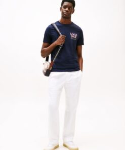 This pure cotton tee is embroidered with a Hilfiger crest logo on the chest, adding a touch of elevated branding to this relaxed style.