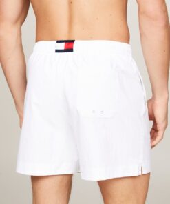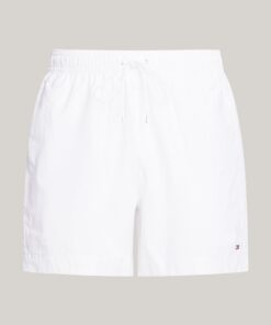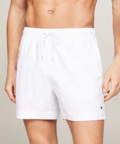 Bring comfortable materials and classic styling to your wardrobe with these mid-length swim shorts, featuring a comfy drawstring waist.