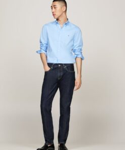 This cotton dobby shirt cuts a sleek silhouette with its slim fit, while Tommy Hilfiger Flex technology keeps things all-day comfortable.
