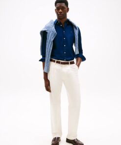 This slim-fit shirt is woven from pure cotton dobby with Tommy Hilfiger Flex technology, providing four-way stretch for maximum comfort.