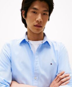 This slim-fit shirt is woven from pure cotton dobby with Tommy Hilfiger Flex technology, providing four-way stretch for maximum comfort.
