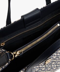 This modern satchel is crafted from an eye-catching TH monogram jacquard fabric, with a gleaming plaque to complete the look.