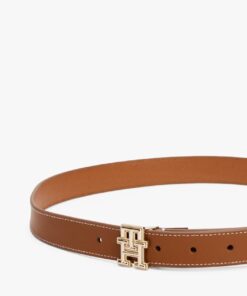 Coordinate your jewellery with this textured leather belt, which makes a stylish statement with its gold-tone TH monogram buckle.
