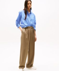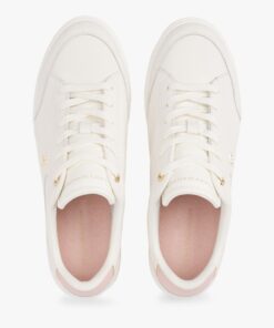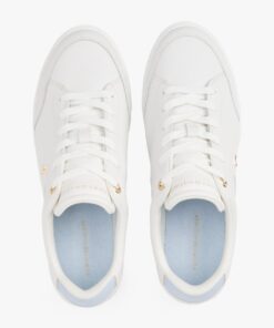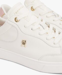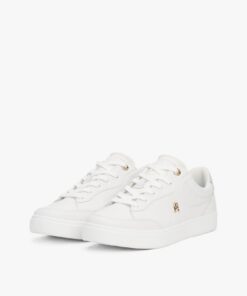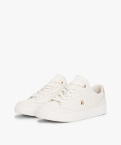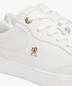 These sophisticated leather court trainers elevate athleisure style with a tonal upper featuring polished hardware and TH monogram plaque detailing.