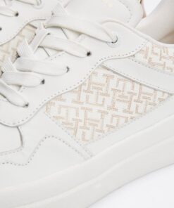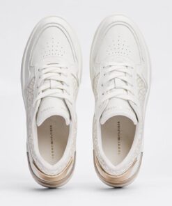The new mark of distinction. Inspired by our heritage, but designed for tomorrow ? our Monogram is a modern take on a time-honoured icon. Add opulence to your footwear rotation with these glittering leather court trainers featuring metallic TH monogram panels and gold-tone accents.
