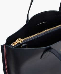 Upgrade your commute with this stylish and practical TH monogram-embellished satchel, offering a spacious interior and a detachable coin purse.