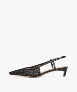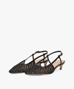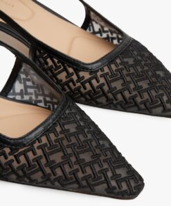 These sophisticated slingbacks feature all-over TH monogram embroidery on the mesh uppers, while kitten heels and pointed toes add feminine touches.
