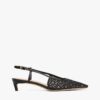 These sophisticated slingbacks feature all-over TH monogram embroidery on the mesh uppers, while kitten heels and pointed toes add feminine touches.