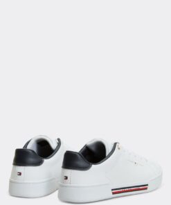 Elevate your everyday ensemble with the stripe insert sneaker by Tommy Hilfiger. Features include gold metallic branding, gold eyelets and a classic sneaker silhouette.