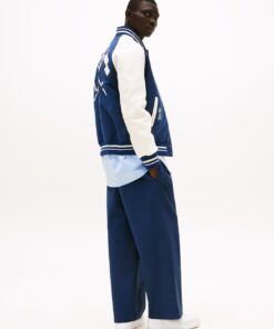 A new American prep wardrobe, presented at New York Fashion Week. Channel edgy collegiate vibes by layering this oversized varsity jacket with its prominent back logo over loosely fitted shirts and trousers.