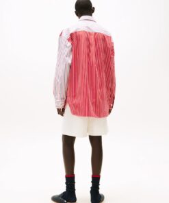 A new American prep wardrobe, presented at New York Fashion Week. Let bold regatta stripes on this half-and-half shirt peek out from under a casual jacket for a refined take on layering.