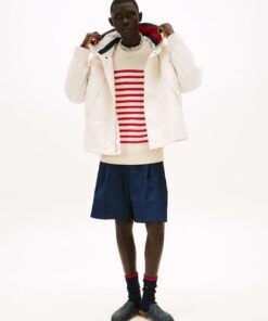 A new American prep wardrobe, presented at New York Fashion Week. Worn with nautical knits and oversized shorts, this minimalist regatta jacket with signature detailing will enhance your outerwear.