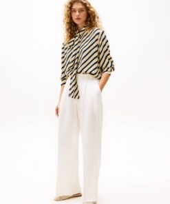 Sofia Richie Grainge lives the everyday twist in Tommy Hilfiger’s most covetable Spring pieces. Express your sense of style on smart days in this relaxed-fit shirt, complete with an eye-catching Breton stripe and tie-neck detailing.