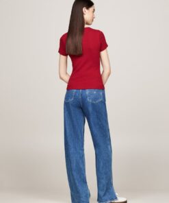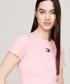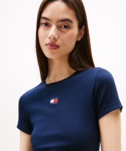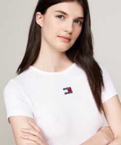 This figure-hugging tee is made from ribbed stretch cotton and showcases the stand-out Tommy badge front and centre.