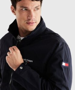 Iconic Tommy, this yacht jacket combines high function with classic styling. Crafted with water resistant fabric, this jacket features a concealed optional hood, multiple pockets and understated Tommy Hilfiger branding.