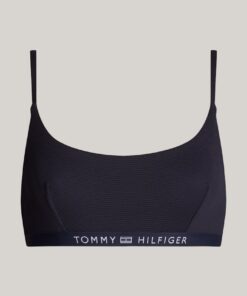 Blend style and comfort in this understated bralette bikini top, with its tactile ribbed texture and tonal logo branding.