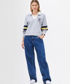 A contemporary twist on heritage style, this pure cotton rugby shirt is cut to a cropped fit with bold stripes on the sleeves and crest embroidery on the chest.