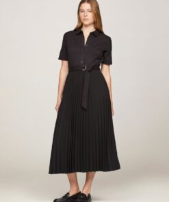 With its elegant silhouette, pleated skirt and belted waist, this viscose blend dress is perfect for any smart-casual occasion.